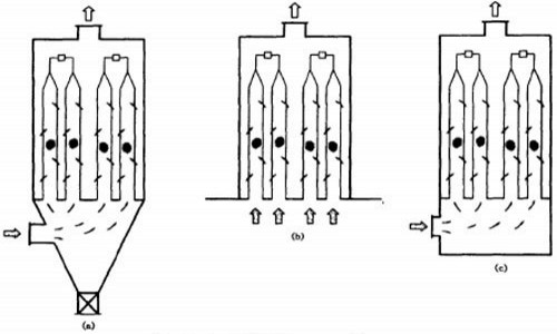 (4)進氣和排灰部分:可分為三種,如圖2所示,①UF(FM)型如圖所示,下部為敞開式,清灰時粉塵直接從花板卸出進入庫、倉等?;ò宸ㄌm直接座在庫、倉排氣口,排氣直接通過花板孔,進入濾袋。②UF(STD)可下接灰斗,主要用庫底及輸送設備的揚塵點。③UF(FB)型帶有儲灰箱,主要用于濃度不高的通風口氣體凈化。