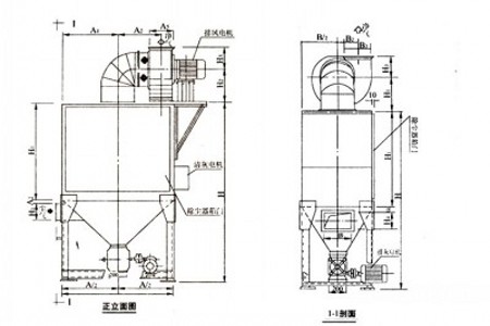 本機組分為A型和B型兩種型式。A型不帶料斗和排灰裝置,B型帶料斗和排灰裝置。它可以直接安裝在揚塵點上(如皮帶輸送機的導料槽、料倉)。