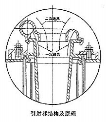 含塵氣由進氣口進入預分離室,除去粗粒粉塵后,經(jīng)濾袋外壁進入內部得以過濾。凈化后的氣體經(jīng)引射器進入上箱體后,由排氣管排出。